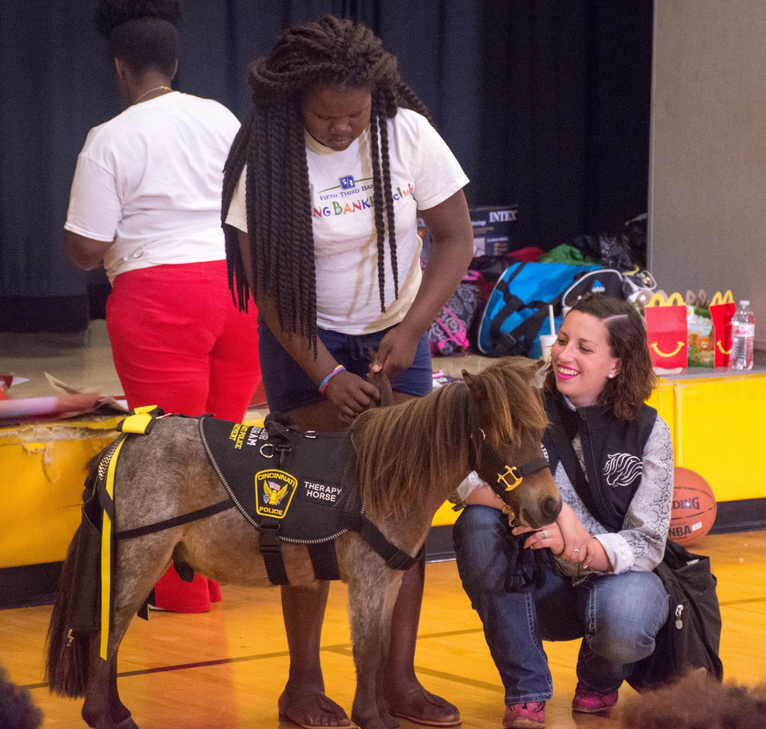 The program provides information to students that defines bullying and how it differs from someone being rude or mean. We provide examples of the 4 basic types of bullying that occur and the legal ramifications associated with it. We partnered with our local police departments and school resource officers when possible to help present portions of the program. Children are taught a variety of ideas and methods to deal with bullying situations using real life situations. After the conclusion of the presentation, students and faculty are able to meet our tiny miniature horses.